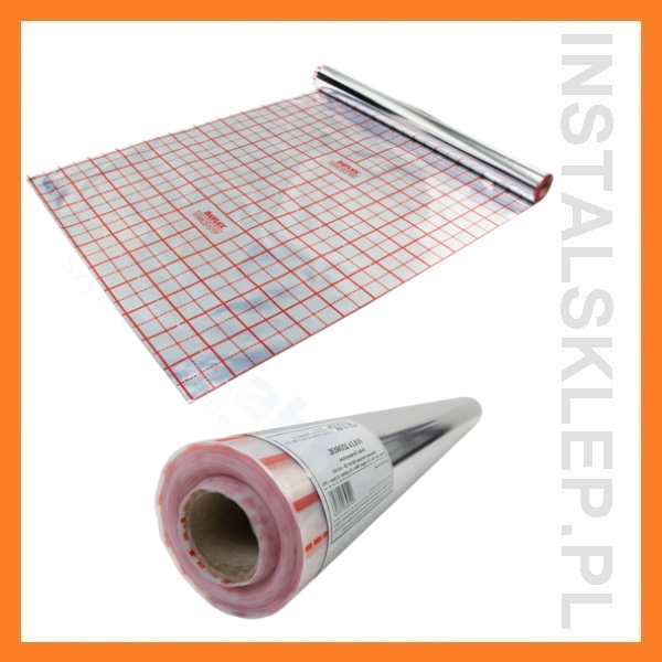 - Na wierzchniej stronie folii wykonany jest nadruk w postaci linii ciągłych tworzących kratę o boku 10cm, oraz przerywanych tworzących kratę o boku 5cm, ułatwiających prawidłowe rozłożenie na niej rur grzewczych.