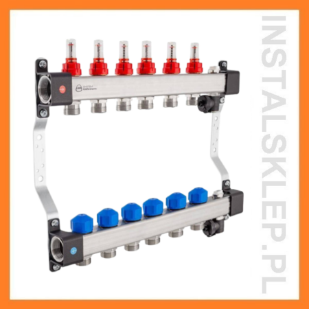 KAN-therm InoxFlow Rozdzielacz 7-obwodowy UFST z przepływomierzami i zaworami do siłowników oraz sekcją odpowietrzającą Kod 1316157082